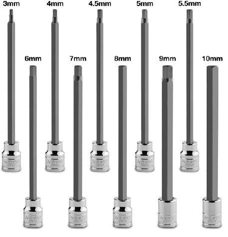 NEIKO 10pc Extra Long Hex Bit Socket Set – Metric