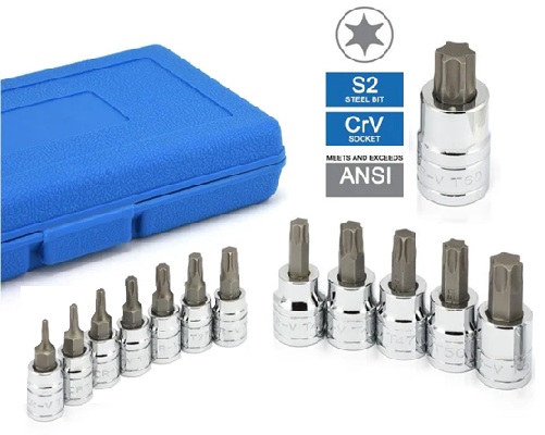 HomeCatalogueAssortment Kits and SetsHex, Star, Tamper Proof, Spline KitsNEIKO 13pc Torx Bit Socket Set – T8-T60