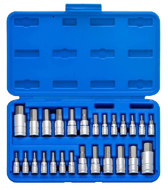 1/4″ Drive Sizes: 5/64″, 3/32″, 1/8″, 5/32″, 3/16″, 7/32″, 1/4″