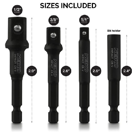 NEIKO 4pc Impact Socket Adapter and Magnetic Bit Holder Set