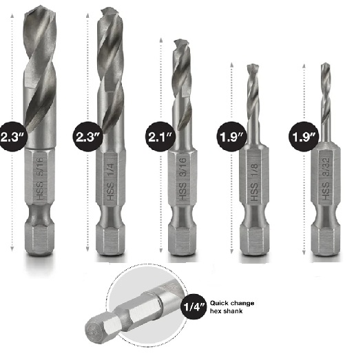 Includes: 5 Drill Bits