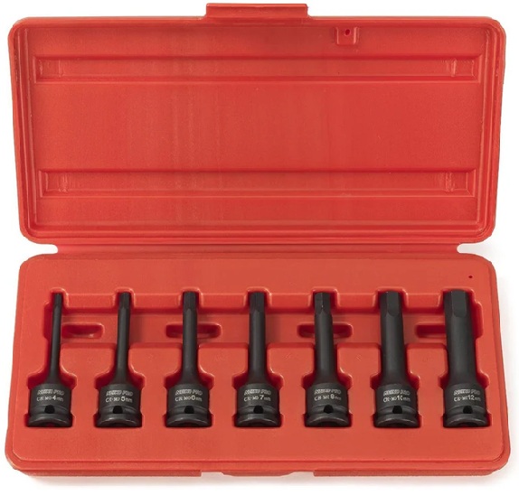 7pcs 3/8″ Drive Impact Hex Driver Sizes: