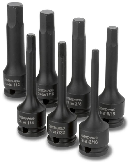 HomeCatalogueAssortment Kits and SetsHex, Star, Tamper Proof, Spline KitsNEIKO 7pc 3/8″ Drive Impact Hex Driver Set – SAE – 3/16″-1/2″