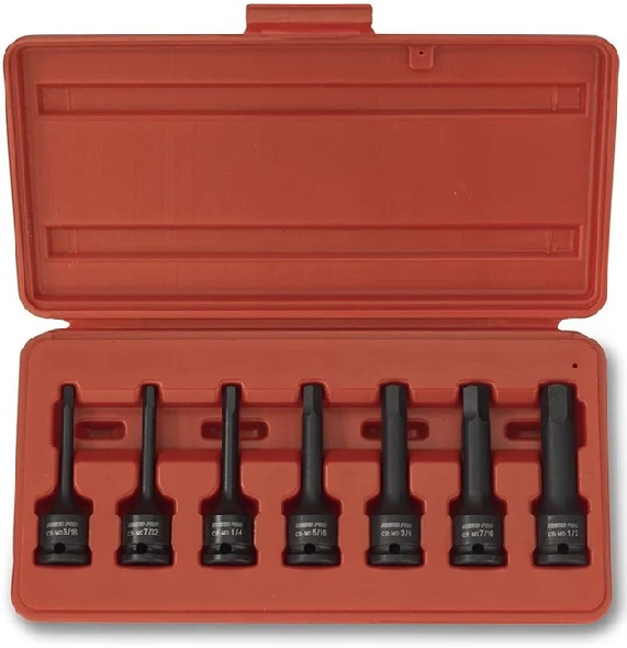 7pcs 3/8″ Drive Impact Hex Driver Sizes: