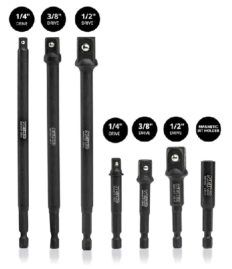 NEIKO 7pc Impact Socket Adapter and Magnetic Bit Holder Set
