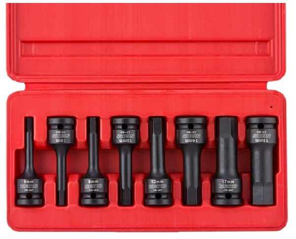 8pcs 1/2″ Drive Impact Hex Driver Sizes: