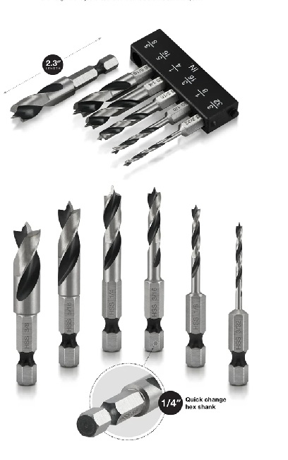 NEIKO 6pc Quick Change Stubby Drill Bits for Wood – SAE