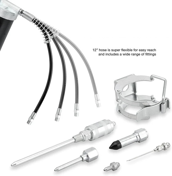 This heavy duty lube accessory kit contains most popular lube accessories